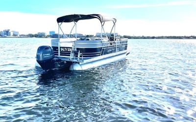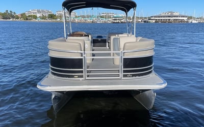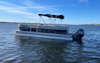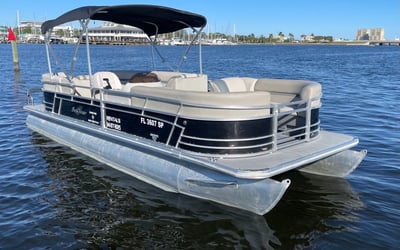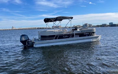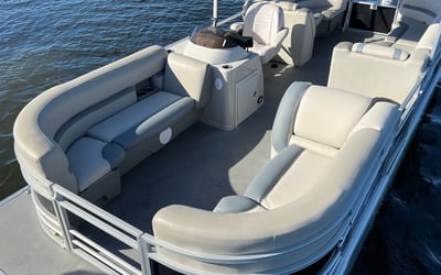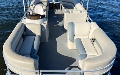 Bask on the water aboard a spacious 24-foot SunChaser pontoon built for relaxing family days and sandbar explorations. Enjoy wrap-around seating, Bluetooth tunes, and GPS guidance while you explore at your own pace.