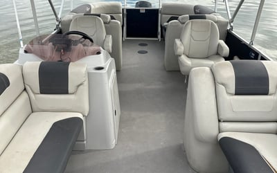 Enjoy a smooth ride on a 25-foot SunChaser Tritoon with 150HP power. Spacious seating, tow bar, swim ladder, and stereo make lake days easy.
