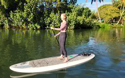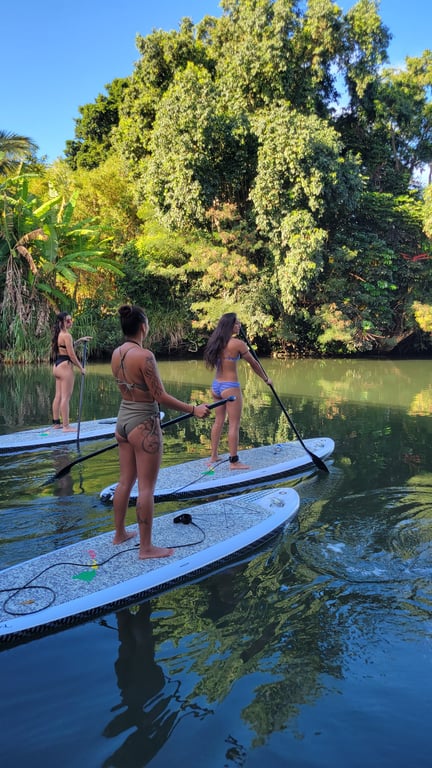 Start your day with a beginner-friendly SUP on the Anahulu River and watch for turtles