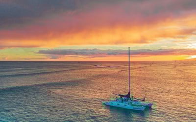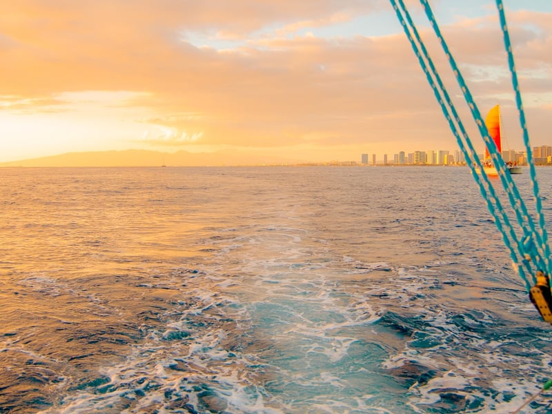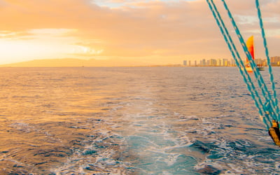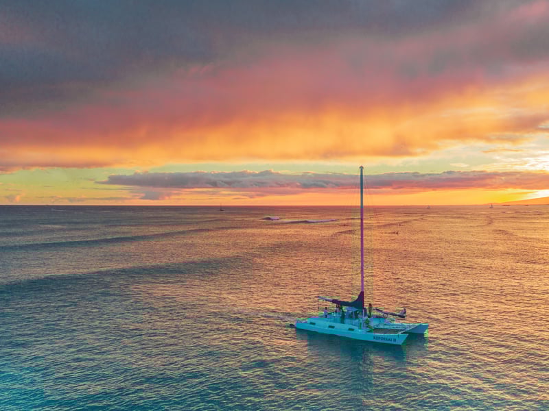 Watch Honolulu’s skyline glow as you relax aboard a catamaran during a spectacular sunset cruise.