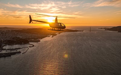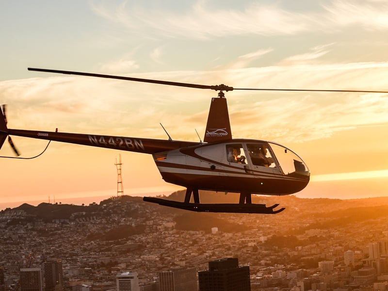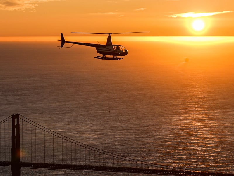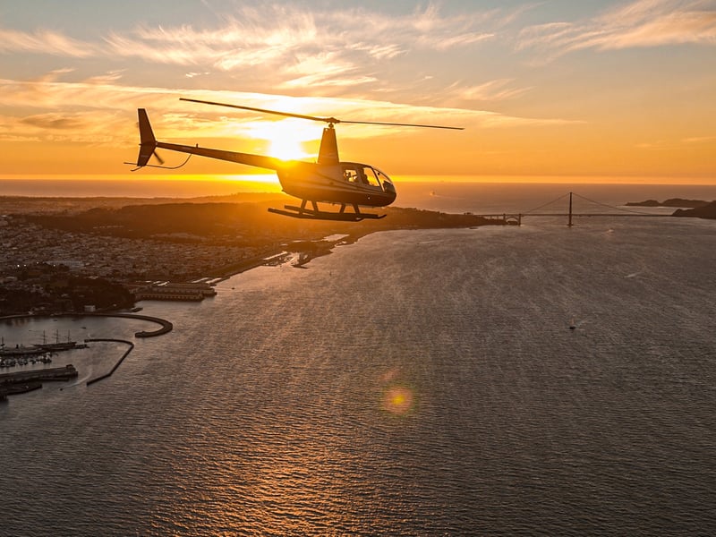 Toast with champagne at the seabase, then board for a 40-minute sunset flight over Sausalito, the Golden Gate Bridge, and San Francisco. Take in coastal views, city skylines, and orbits of Alcatraz and Angel Island.
