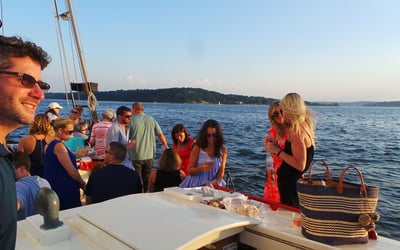 Sail Oyster Bay Harbor at golden hour and share unforgettable sunset views with up to 24 fellow passengers.