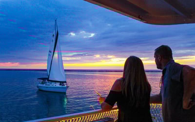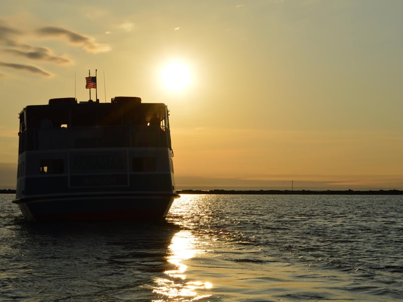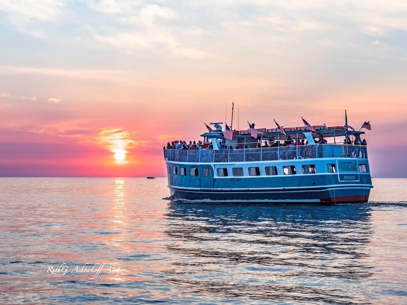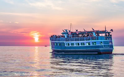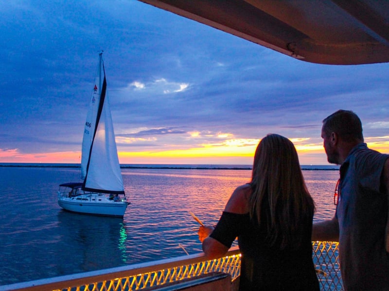 Watch vibrant colors reflect off Muskegon Lake as you sip cocktails aboard the Aquastar