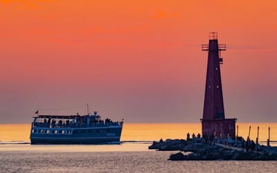 Unwind on an evening cruise across Muskegon Lake and Lake Michigan. Enjoy cool drinks, fresh air, and panoramic sunset views.