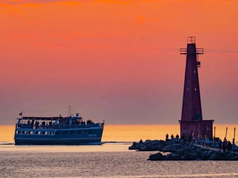 With overwhelmingly positive feedback, these sunset cruises on Muskegon Lake and Lake Michigan have become a local favorite for good reason. The crew consistently stands out in reviews, going above and beyond to make guests comfortable, whether that's helping elderly passengers navigate stairs, ensuring veterans receive their complimentary tickets, or simply creating a welcoming atmosphere. The boat itself offers plenty of seating options between sun, shade, and indoor areas, plus an onboard bar for drinks during your cruise. The scenery and overall experience are the real draws here. Guests rave about watching sunsets over the water while enjoying live musicians or themed events like mariachi and dance cruises with salsa and swing lessons. Many visitors become repeat customers, coming back season after season. A few reviewers mentioned drink prices running a bit high, and there was one note about music selection not quite matching the crowd, but these are minor details in an otherwise consistently praised operation. It's a particularly nice option for celebrations and special occasions, with staff known for adding thoughtful touches.