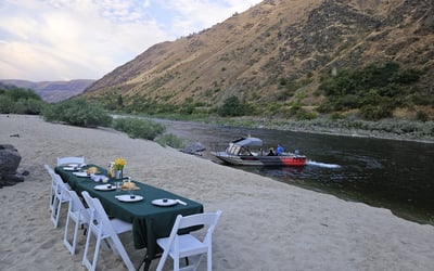 Glide along Idaho's Salmon River on an evening jet boat cruise that combines laid-back sightseeing with hands-on bass fishing and a gourmet dinner on a secluded beach. Enjoy comfortable seating on a partially covered, heated boat as you watch the sun set over Green Canyon.