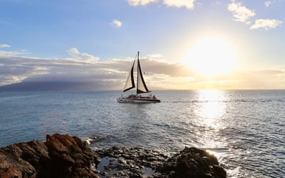 Relax as the crew sets sail for two hours of smooth trade-wind sailing with views of the West Maui Mountains, Molokai, and Lanai. Sip a Mai Tai or a Maui-brewed beer as you lounge on deck and watch the sunset.