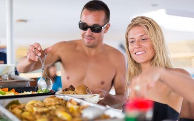 Enjoy a 2-hour sunset sail with catered dinner and a complimentary premium bar