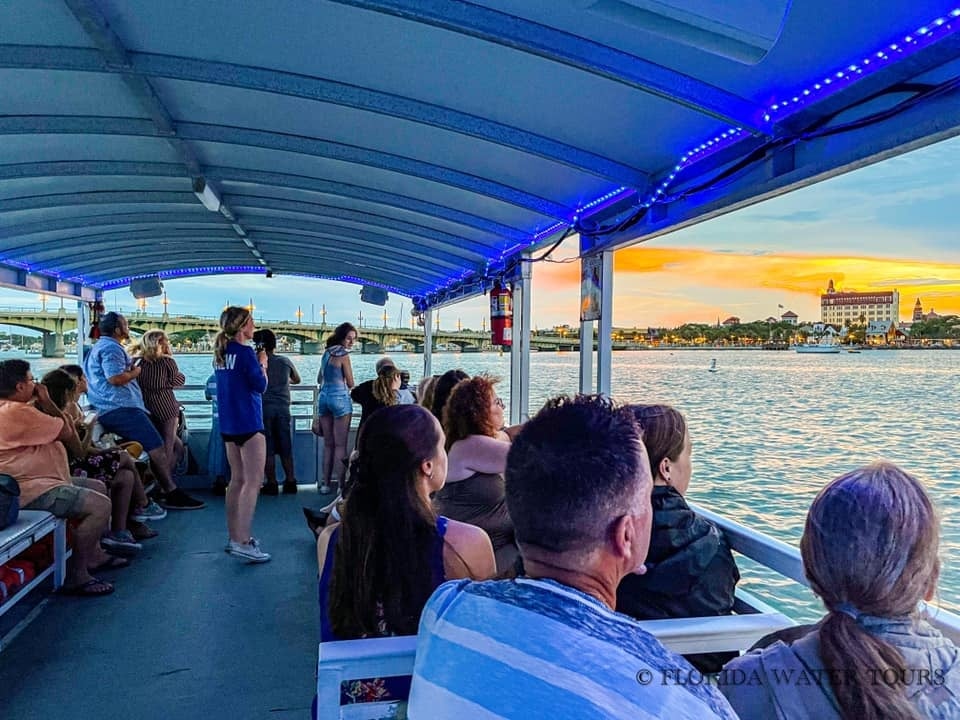 Experience a scenic sunset cruise with dolphin sightings and iconic St. Augustine views.