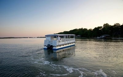 The cruise uses a spacious 45–55 foot pontoon boat.