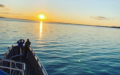 Sail Frenchman Bay at sunset on a narrated nature cruise along Acadia's shoreline. Spot eagles, seals, and harbor porpoise and visit Egg Rock Lighthouse with happy hour music.
