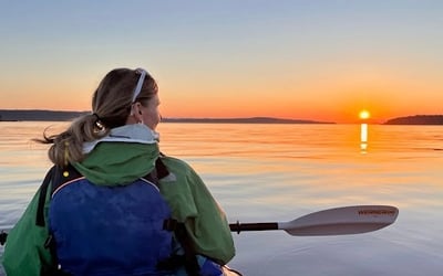 Paddle Orcas Island’s north shore at dusk and watch the sunset from the water