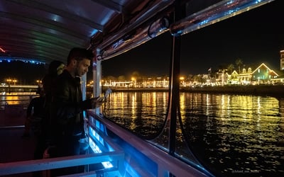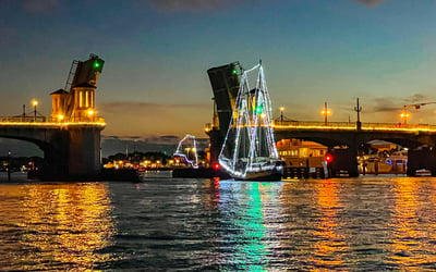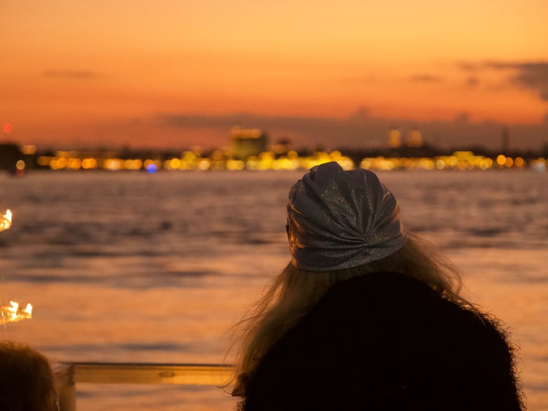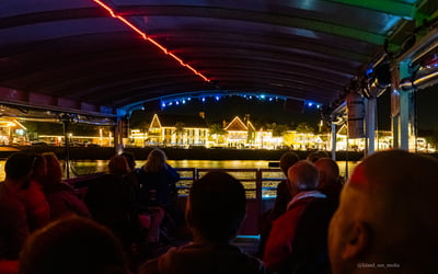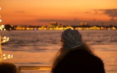 Cruise into twilight for sunset views and Nights of Lights from the water on an enclosed boat