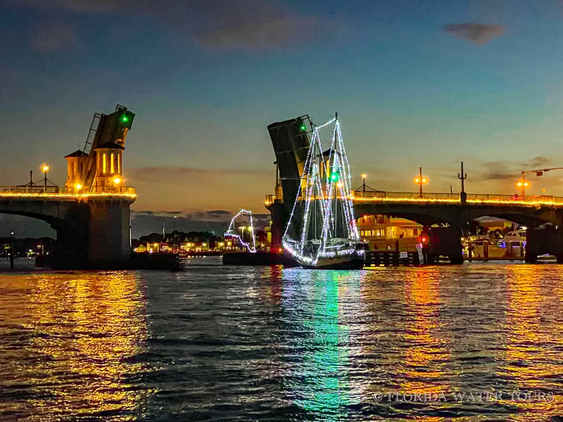Enjoy a coastal sunset followed by St. Augustine’s Nights of Lights from the water aboard the Island Breeze. Ride in comfort with shaded, enclosed seating, onboard restroom, and guided commentary.