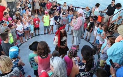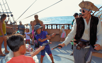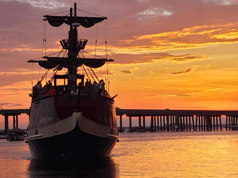 Sail Destin's Emerald Coast at golden hour with interactive pirate fun for all ages
