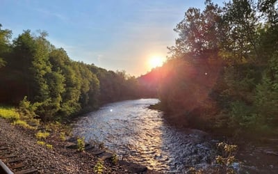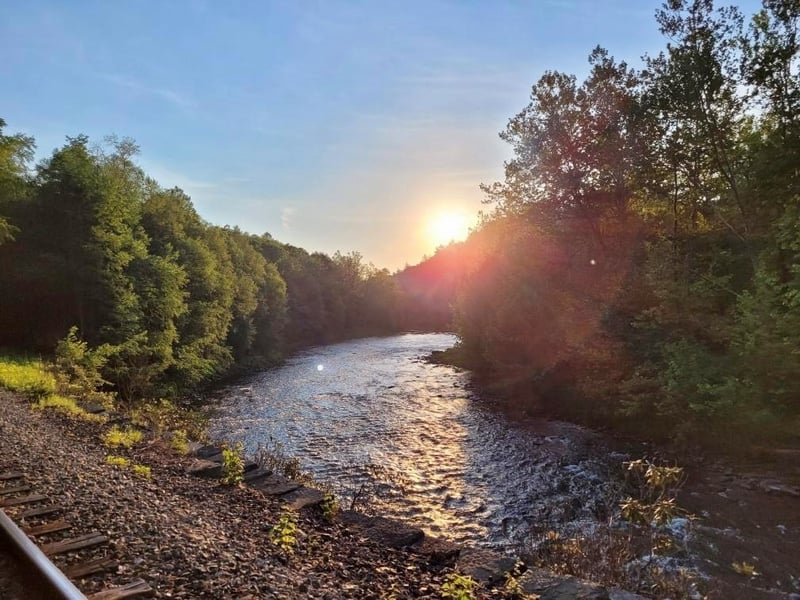 Ride electric rail bikes at sunset from the Hawley Train Depot. Follow forested tracks beside the Lackawaxen River and enjoy a relaxing beverage break.