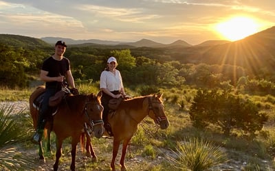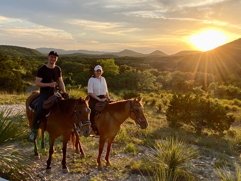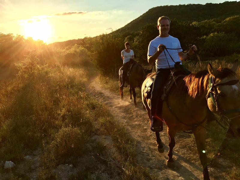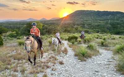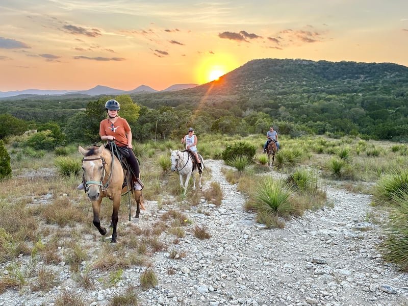 Experience a magical Hill Country sunset on guided trails, suitable for first-timers to intermediate riders