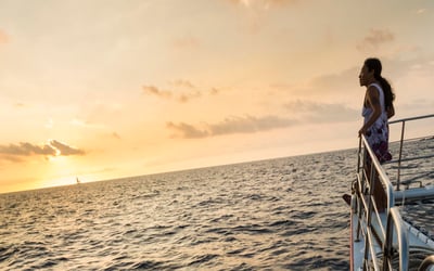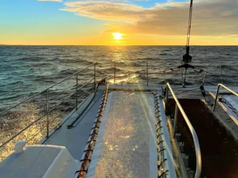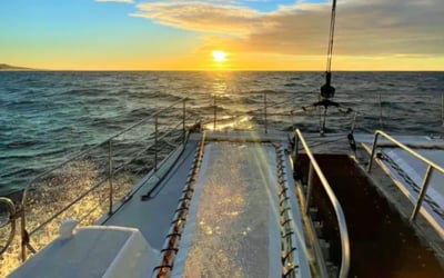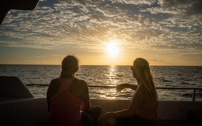 Sail along the Kona coast at sunset, then slip into the water to snorkel with majestic manta rays at Manta Ray Village. After your swim, warm up with hot cocoa and tea as the lights of Kona glow on the return.