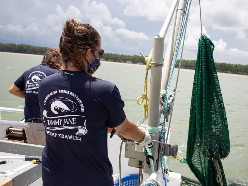 Join the crew aboard the Tammy Jane for a 2-hour shrimping expedition at sunset. Learn about the salt marsh ecosystem and meet sea life safely brought up in the nets, with a chance to take home fresh shrimp if caught.