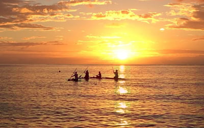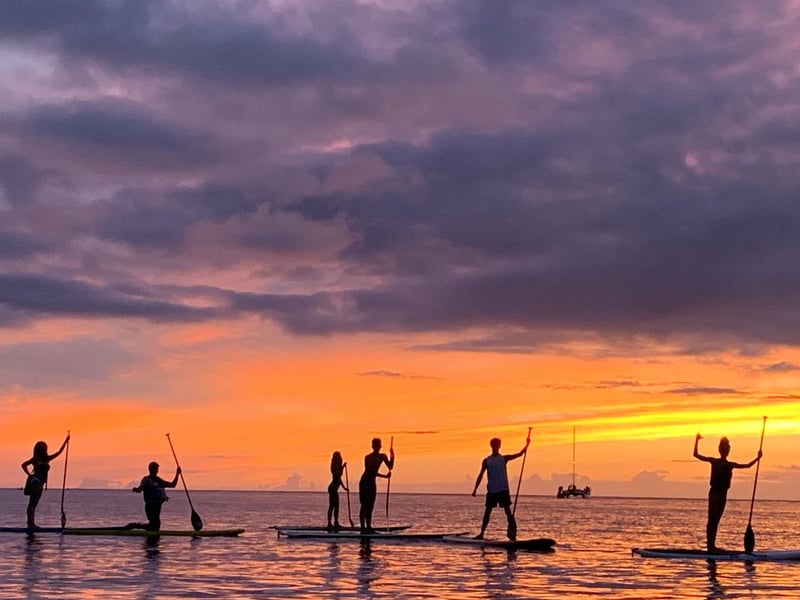Paddle into a glowing Hawaiian sunset and spot turtles settling in for the night.