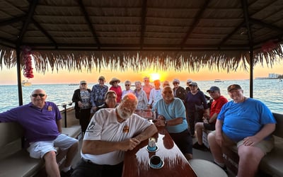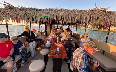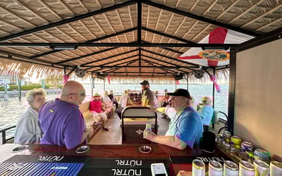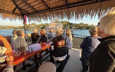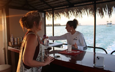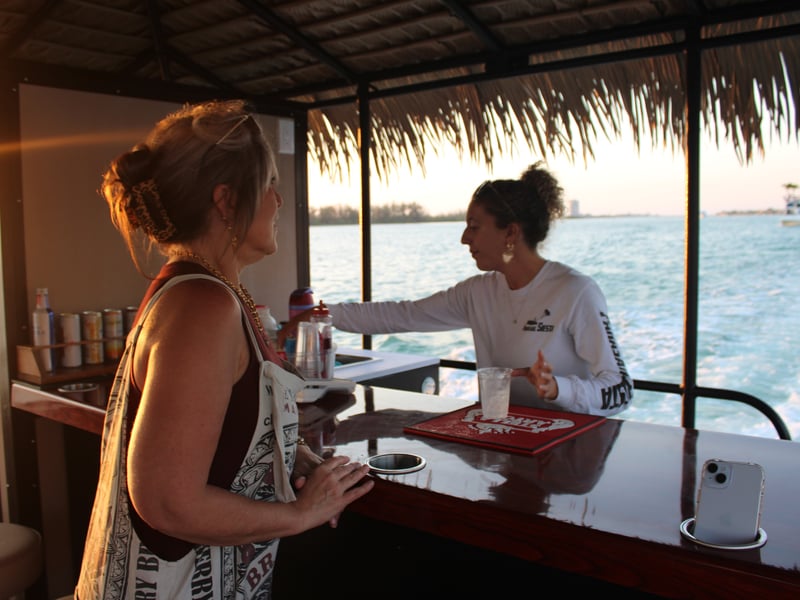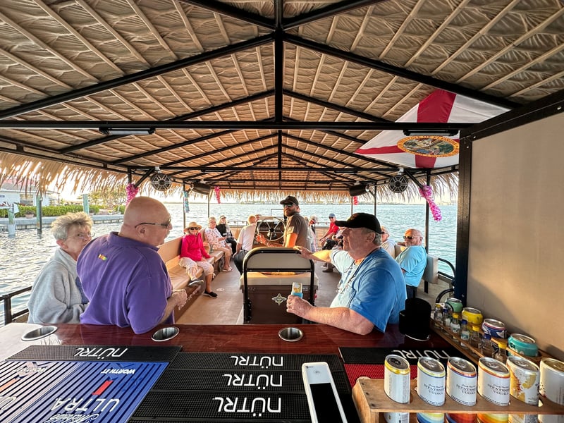 Watch the sun dip below the horizon as you glide along Siesta Key’s Intracoastal Waterway on a 2024 tiki boat. Enjoy shaded seating, an onboard restroom, and a lively sound system.