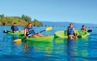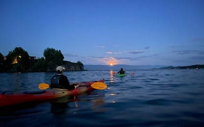 Paddle calm Somers Bay at dusk for stunning lake vistas suitable for all ages.