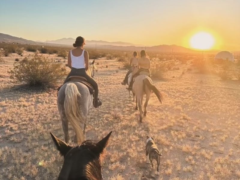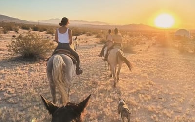 Enjoy a peaceful walk ride near the ranch in Joshua Tree as you take in the golden hour sunset. This experience offers a relaxing way to end your day in the desert.