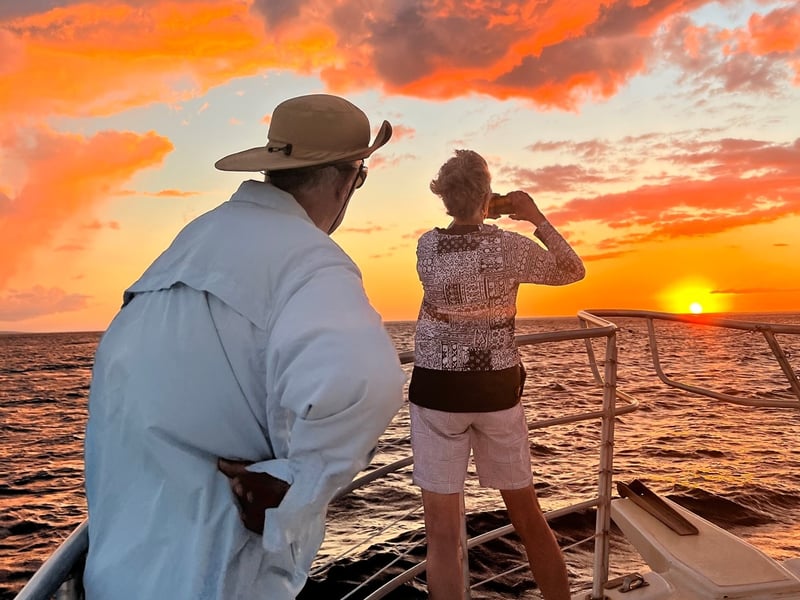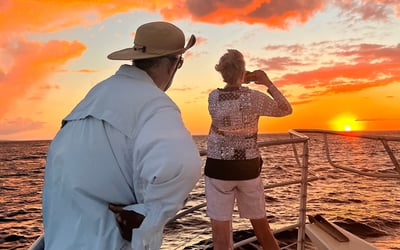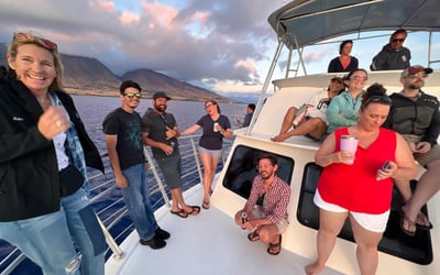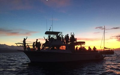 Join the Maui Diamond for an uncrowded sunset whale watch offered January through March 31. Move freely around the boat and learn from experienced guides