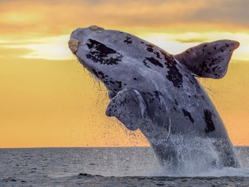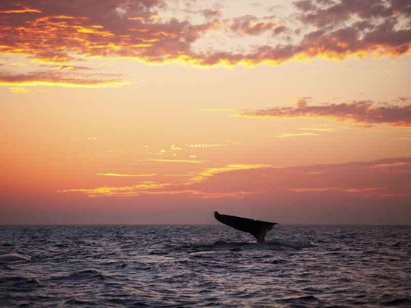 Watch migrating humpbacks at dusk while relaxing with your favorite drinks on a stable two-deck vessel