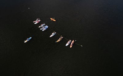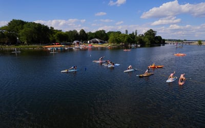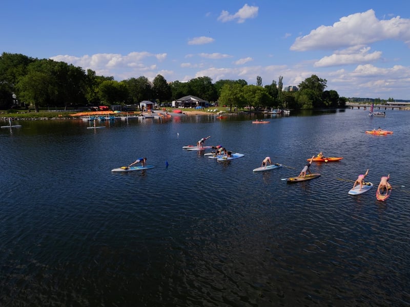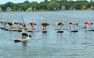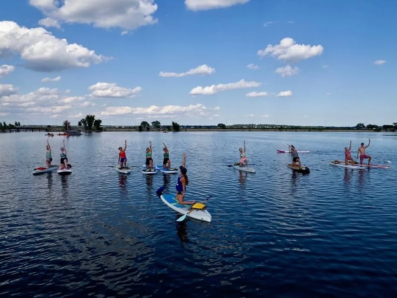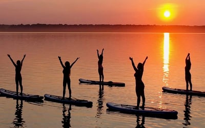 Strengthen your core and improve balance while flowing through yoga poses on a paddleboard. Breathe in fresh lake air as gentle waves enhance every movement.