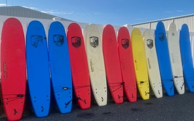Pick soft-top or hard boards 6–9 ft, swap anytime, and enjoy flexible rentals with free delivery