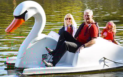 Pedal a swan boat from Town Green Park along the Upper Waterway to the edge of Lake Robbins and back at your own pace. Select one or two hours and book the number of boats your group needs.