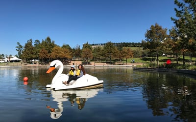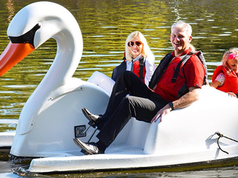 Pedal a swan boat for up to four along the Upper Waterway