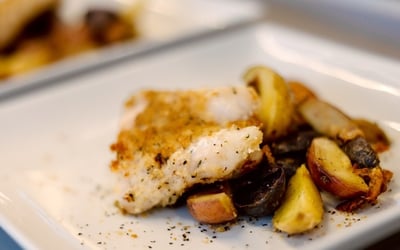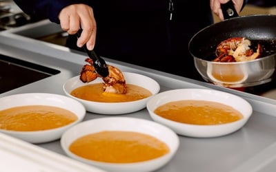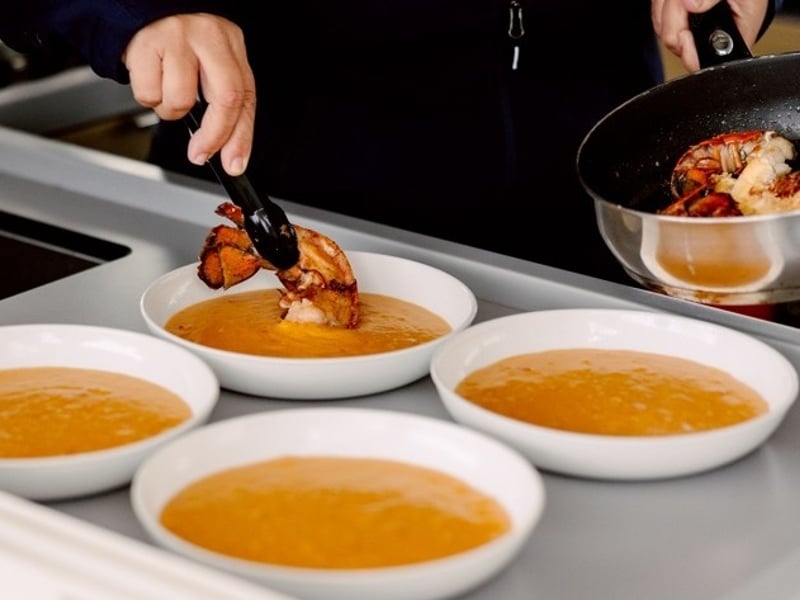 A: A private chef prepares an upscale 5-course dinner with two bottles of house sparkling wine.