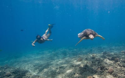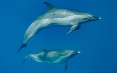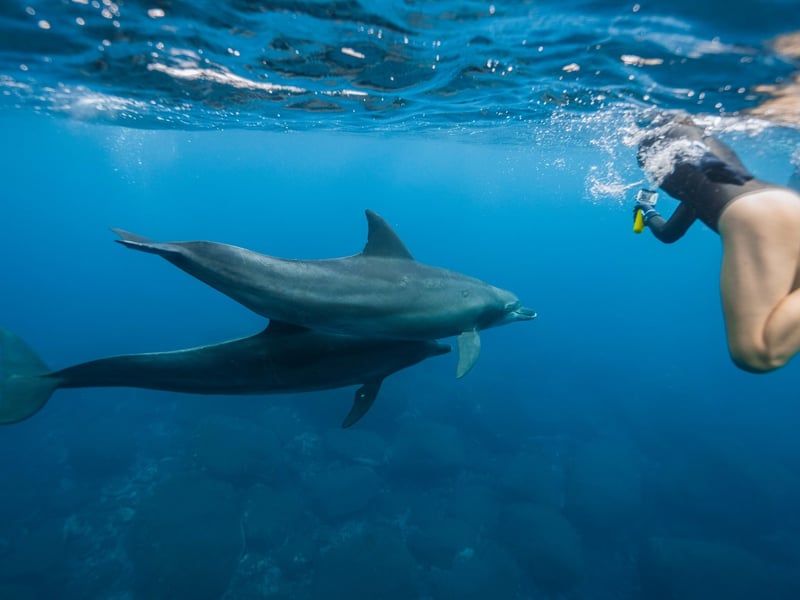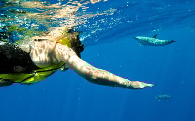 Join small groups up to 6 to swim with bottlenose and spotted dolphins off West Oahu.