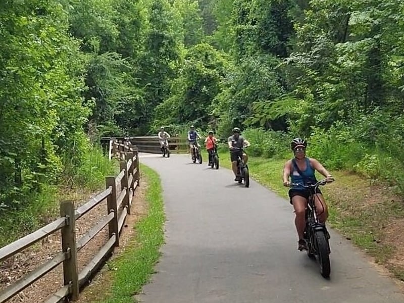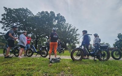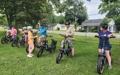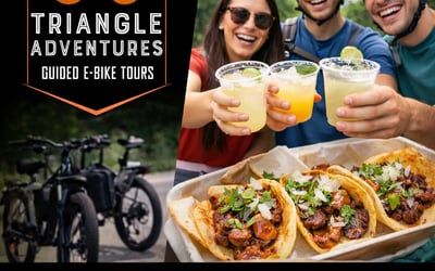 Triangle Adventures delivers consistently excellent e-bike tours around the Raleigh area, with guides Dave and Marlo earning praise in nearly every review. First-time e-bikers repeatedly mention feeling comfortable and well-prepared after thorough instructions, and the bikes themselves are described as easy to ride and well-maintained. The tours blend local history with entertainment, particularly the popular ghost/spooky tour and the Clayton Burgers, Brew & History experience. Reviewers appreciate the thoughtful details like provided gloves, water, and helmets, plus food and drinks that arrive ready when the group does. What makes these tours special is the guide duo's ability to balance education with fun. Dave's humor and Marlo's historical knowledge create an engaging atmosphere that keeps groups entertained throughout 3-hour rides covering 14+ miles. The routes showcase beautiful scenery along greenways and through town, with well-timed stops at cemeteries, trolls at Dix Park, and other points of interest. Groups of friends, teams, and special occasion celebrations all report having memorable experiences, with many already planning return visits for different themed tours.