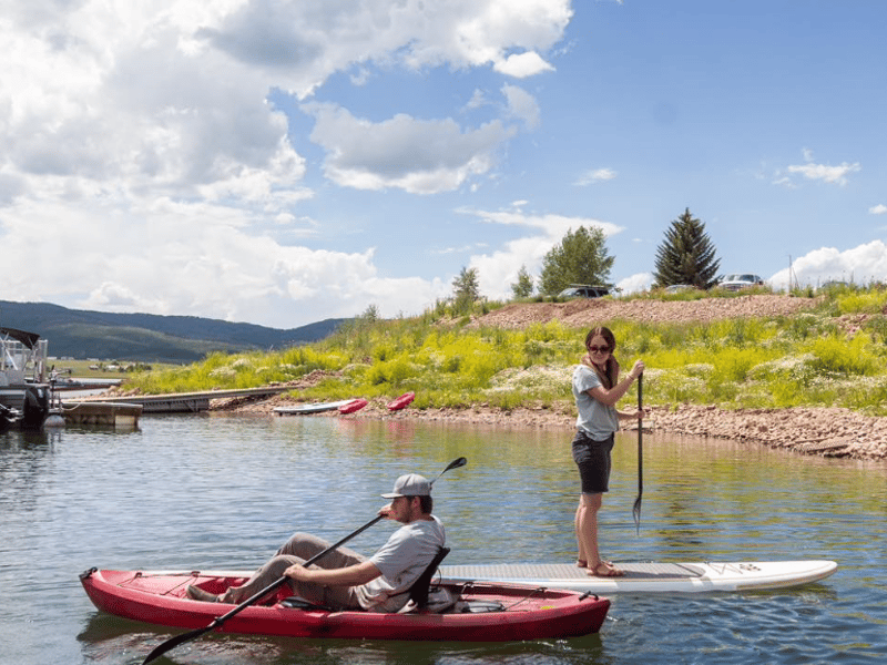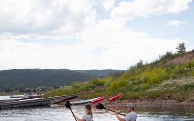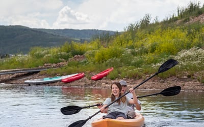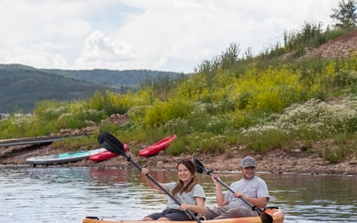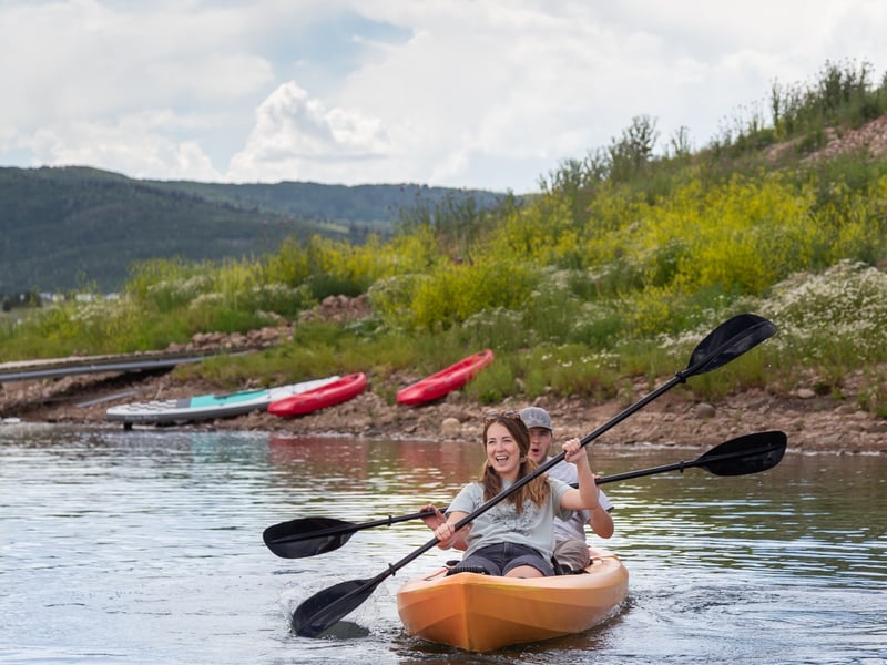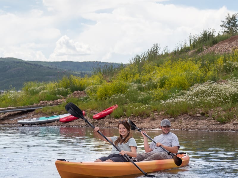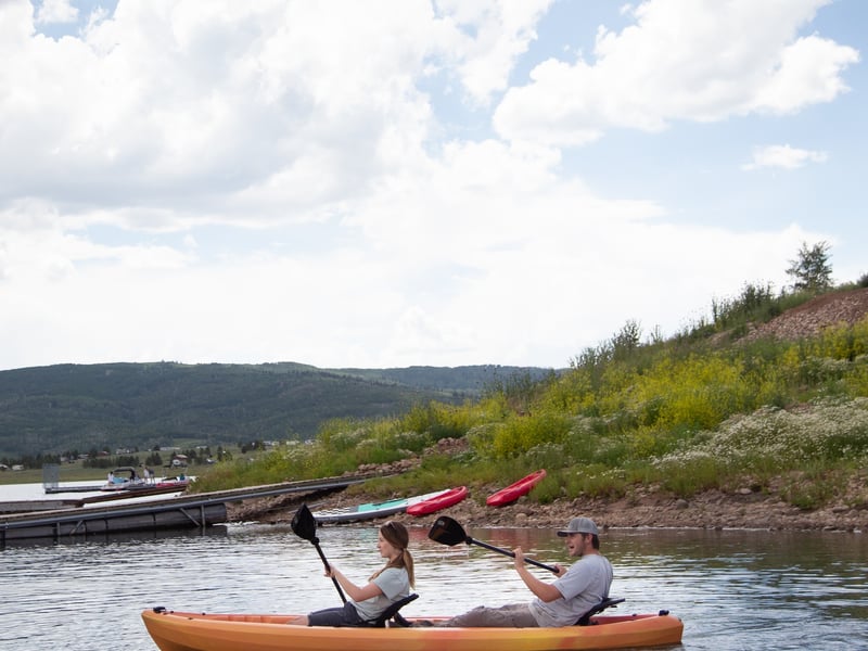 Paddle solo or with a friend on a versatile tandem kayak at Strawberry Reservoir.