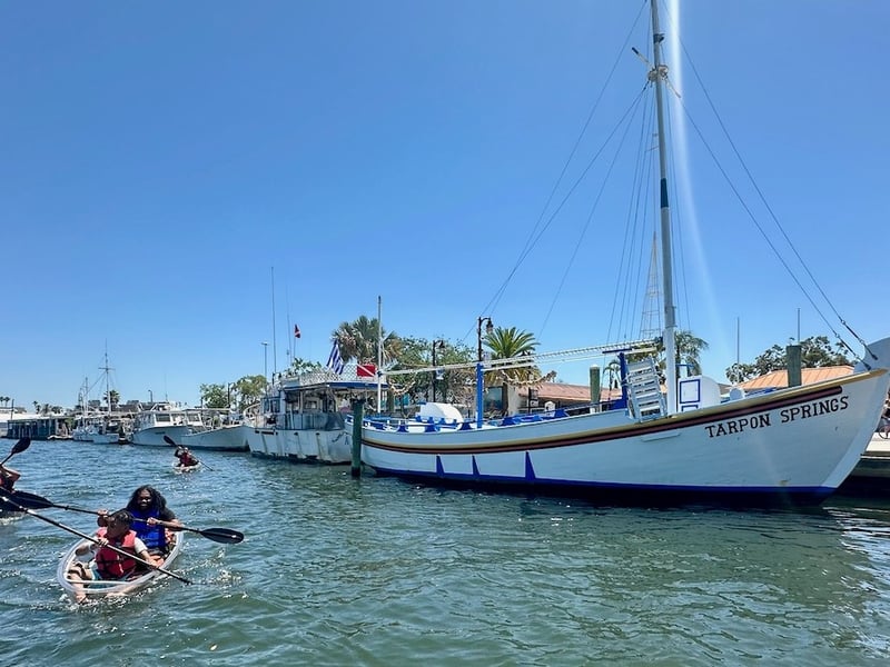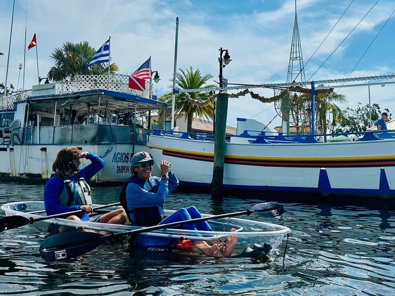 Paddle a transparent kayak through Tarpon Springs bayous to spot manatees, dolphins, and historic landmarks with an expert guide.