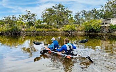 This kayaking operation has earned an exceptional reputation thanks to its team of knowledgeable and personable guides. Names like Raven, Alessia, Alex, Jesse, and Cami come up repeatedly, with reviewers praising their ability to share fascinating details about the local ecosystem, wildlife, and mangroves while keeping groups engaged and comfortable. The guides handle mixed skill levels with ease and show genuine care for their guests, from bringing extra cold water to rescuing kayakers from spiders. The tours themselves offer a beautiful introduction to Tarpon Springs' natural environment. Paddlers regularly spot dolphins, various bird species like ospreys and herons, and get hands-on opportunities to examine oysters and conch shells. The calm waters and clear kayaks add special touches that even win over awkward preteens and first-time kayakers. Multiple families mention how well the guides connected with their children, making the experience both fun and educational. It's the kind of place that inspires repeat visits and leaves people with a newfound appreciation for outdoor adventures.