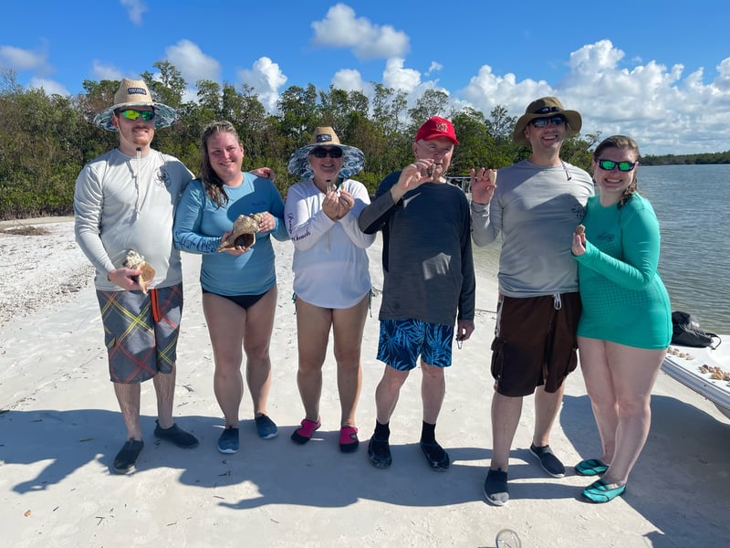 Sand Dollar Shelling's captains consistently deliver memorable experiences that go well beyond a typical boat tour. Paul S., Jamie, and Joey each earn glowing praise for their genuine enthusiasm and deep knowledge of Naples Bay's marine life and ecosystems. They're not just driving boats—they're actively helping guests find exceptional shells, positioning the boat perfectly for dolphin encounters (including babies!), and sharing fascinating local history and wildlife facts along the way. The personal touch really shines through, with captains getting in the water to help collect shells and making guests feel genuinely cared for rather than rushed. Expect to visit multiple islands for shelling, with low tide timing playing a big role in your haul. Guests regularly mention coming home with buckets full of conchs and unique finds. Wildlife sightings are a major bonus, with dolphins appearing on most trips and occasional manatees and stingrays making appearances. The boats are spacious, clean, and shaded—important for Florida sun. The flexibility stands out too, with captains willing to adjust departure times for weather and extend trips when possible to maximize the experience.