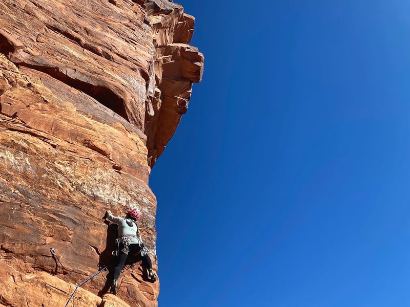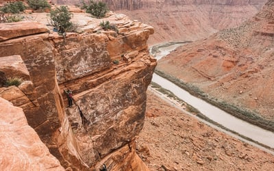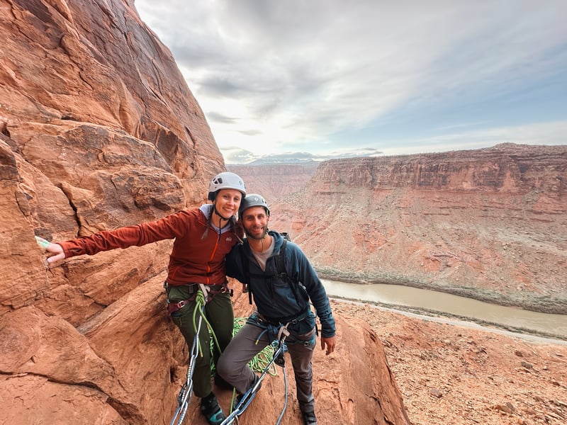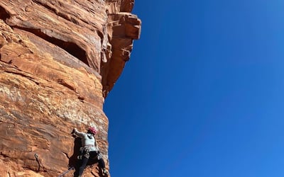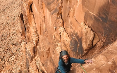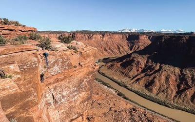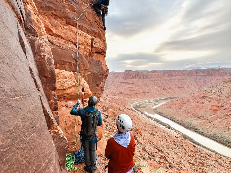 Climb Terma, a unique multi-pitch route high above a bend in the Colorado River. Learn essential systems, reach a beautiful summit, then rappel back down.