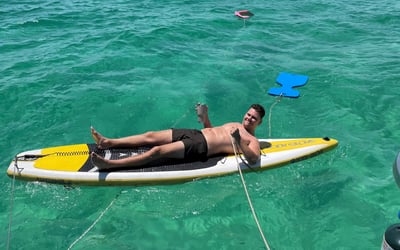 Sail from Bayou Chico across Pensacola Bay to anchor near Fort McRee and a secluded beach. Enjoy swimming, paddleboarding, sightseeing, and lunch on a private 6-hour charter.