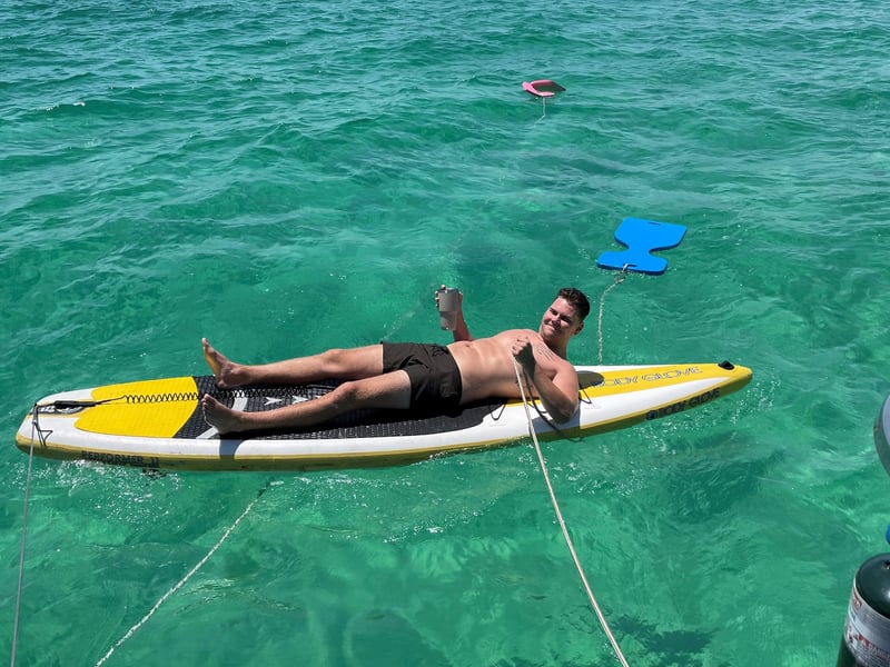 Sail to a secluded beach near Fort McRee for swimming, paddleboarding, and lunch on a private 6-hour charter