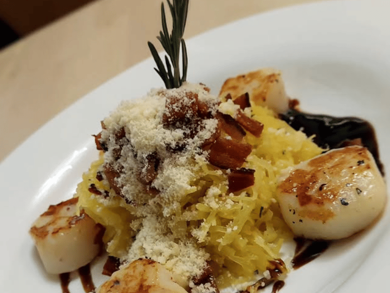 • Herb‑crusted sustainable fish or grilled shrimp