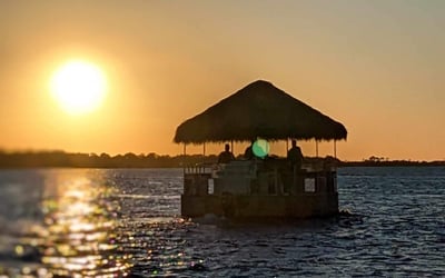 Set out on a relaxed sunset cruise through Destin Harbor and along the Emerald Coast. Ride a Coast Guard–certified tiki boat with a licensed captain, bottled water, and an onboard restroom.