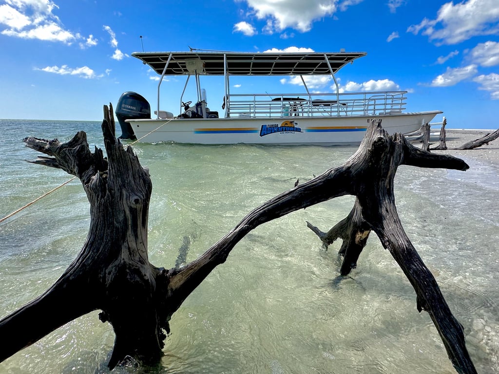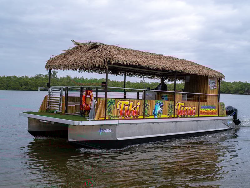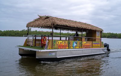 Sit back, relax, and enjoy a flexible private cruise on a BYOB tiki boat with a bathroom on board. Choose scenic homes, mangrove wildlife, or a beach stop—your tour, your boat.