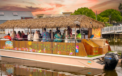 Tiki Time runs rain or shine; the captain cancels only when conditions are unsafe.