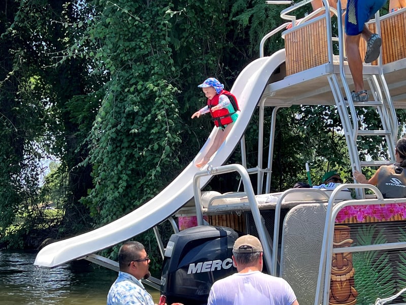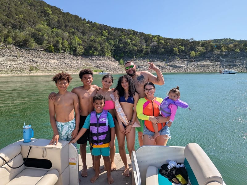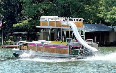 Cruise Lake Travis aboard a 25-foot tiki pontoon with a captain. Swim, relax, and enjoy a day on the water with music and a floating mat.