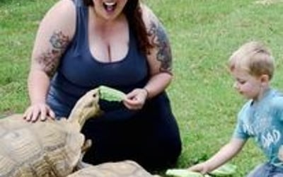Feed and pet 100-pound tortoises with a guide in a 15-minute encounter