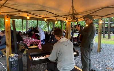 Enjoy an evening of food and music on a scenic train ride to Colgate Grove. Savor a catered meal, live performances, lawn games, fire pits, and local brews trackside.